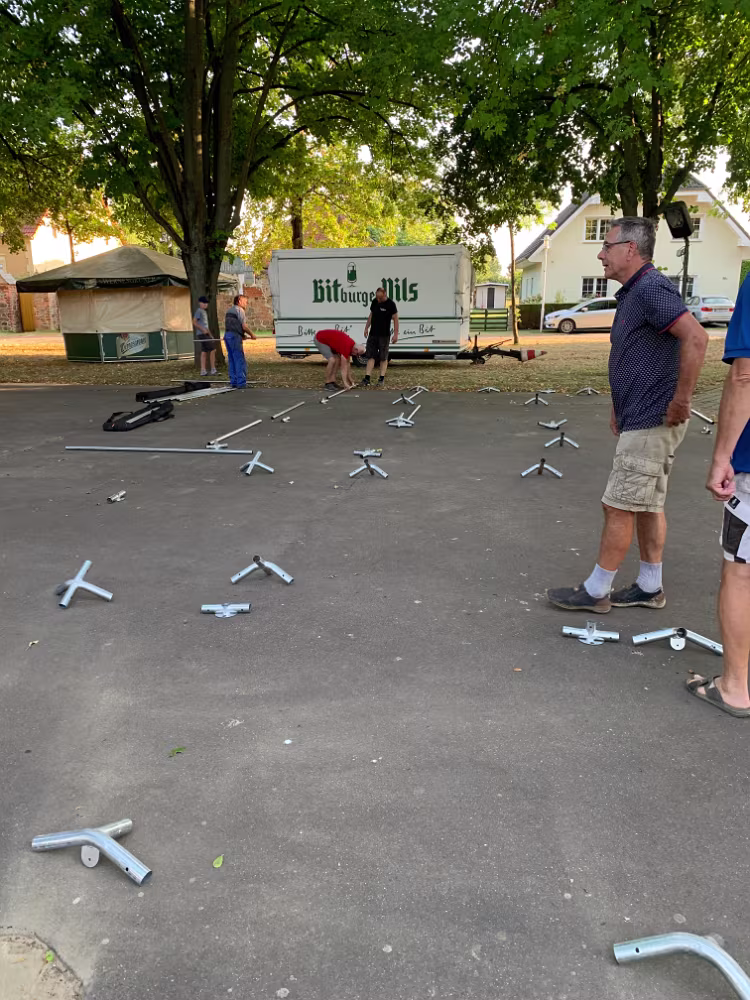 Im Vorfeld haben wir mal wieder ein bisschen die Werbetrommel gerührt Vorbereitung der Süßigkeiten für die Kletterstange. Die Dorfplatte wird gefegt und die Absperrung aufgebaut. Wie in jedem Jahr war der Aufbau des Zeltes ein Highlight und eine kleine Herausforderung. Als Finale der Vorbereitung wurde alles noch schön geschmückt. 01.06.2024 Kindertag07.09.2024 20. Oltimer-Treffen