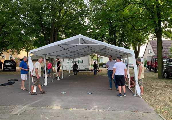 Die Dorfplatte muss gefegt, das Zelt aufgebaut und alles geschmückt werden.