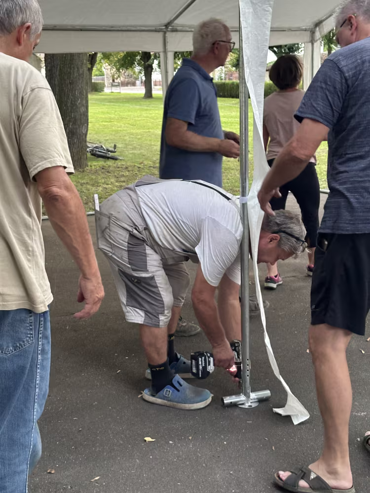 Die Dorfplatte wird gefegt und das Wartehäuschen auf Vordermann gebracht. Dieses Jahr das es recht ungewohnt. Alle Stangen waren markiert. Wir hatten einen Plan. Nach einer kurzen Sortierphase stand auf einmal das Zelt. :-) Als Finale der Vorbereitung wurde alles noch schön geschmückt. 01.06.2025 Kindertag06.09.2025 21. Oldtimer-Treffen