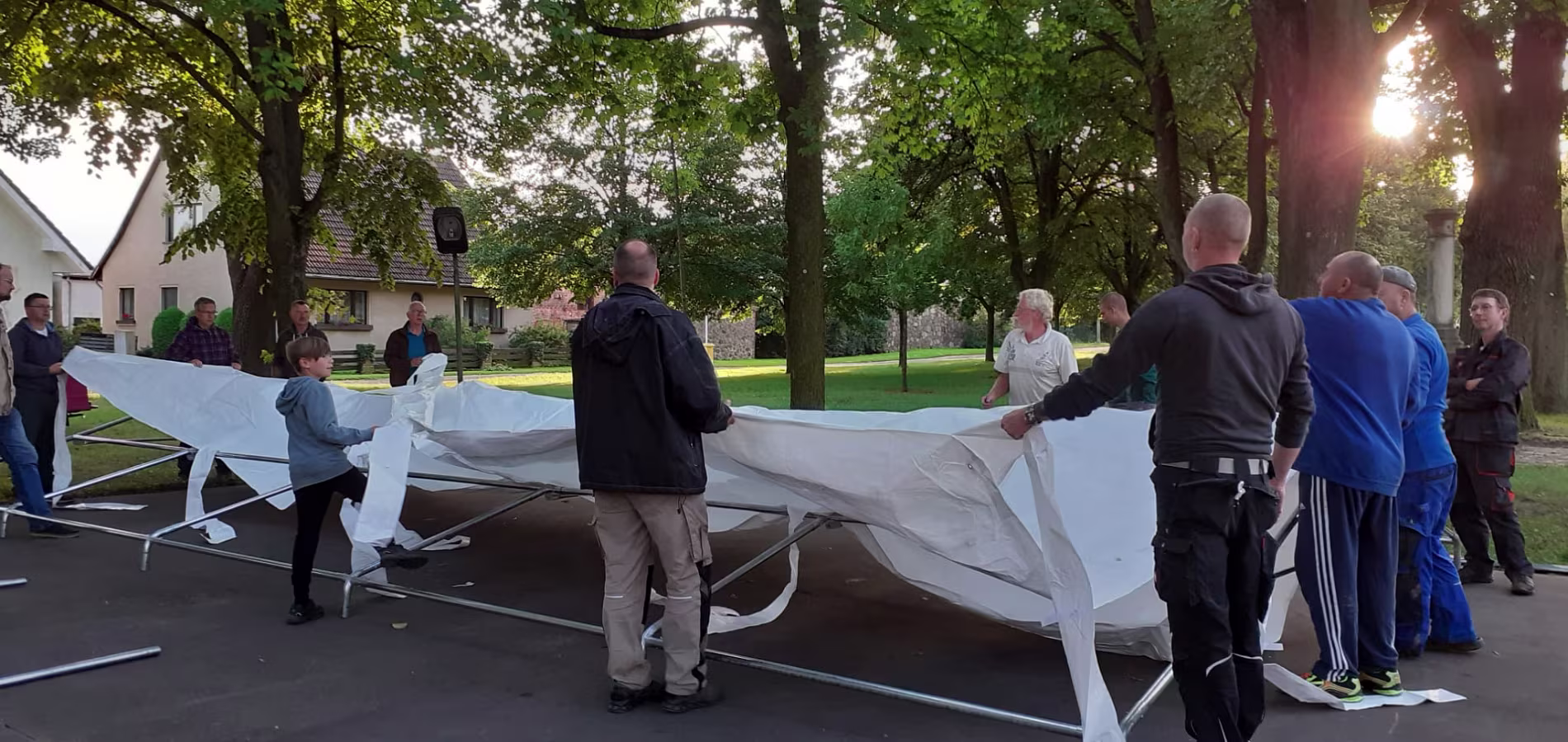 Tag 1 Platte und Bushaltestelle reinigen Tag 2 Zelt aufbauen und Bierzeltgarnituren aufstellen Tag 3 Dekorieren, E-Anlage aufbauen und prüfen, Gelände einzäunen 02.09.2023 19. Oltimer-Treffen11.07.2023 Störche