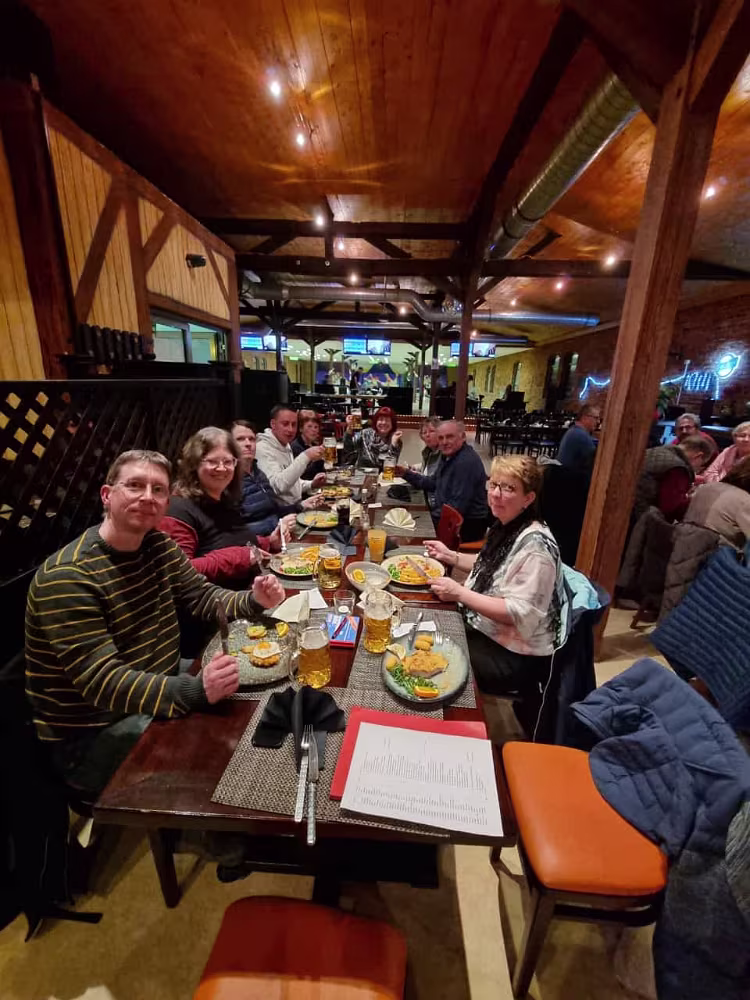 HVH Bowling Stärkung vor dem Spielen Die Küche hat es super hinbekommen, fast 50 Gerichte in Rekortzeit zu servieren. Aber wohin nur? Das hat unser Detlef alles gemanaged! Nach der Stärkung ging es an die Pins. After Show Party & Siegerehrung 24.02.2024 Entenhaus22.03.2024 Schild 'Hohenwalder Höllen'