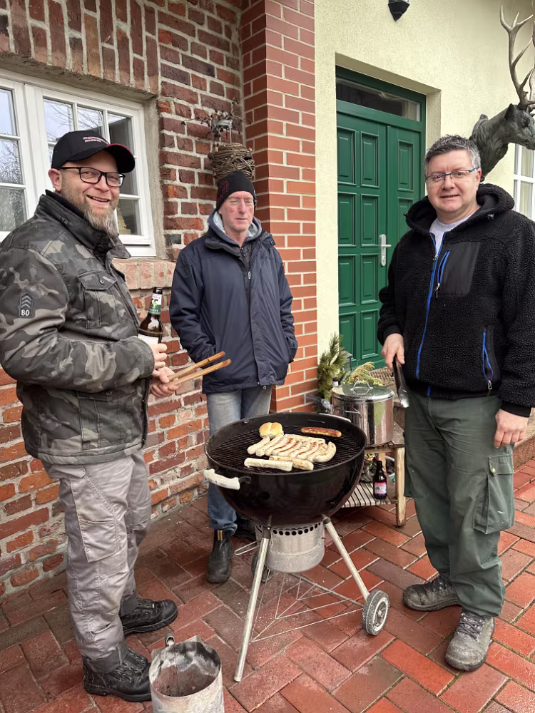 Trotz des "herrlichen Wetters" haben sich viele Unverdrossene eingefunden. Dieses Jahr hatten wir Unterstützung durch das THW. Vielen Dank! Die Gruppen haben sich gefunden und Daniel hat die Routen eingeteilt. Die Gruppen haben sich ans Werk gemacht. Eine Truppe hatte bei dem nassen Untergrund echt Pech. Aber immerhin kam bald Rettung. Nach getaner Arbeit gab es in schöner Tradition ein gemeinsames Grillen. 22.03.2024 Schild 'Hohenwalder Höllen'30.03.2024 Osterfeuer