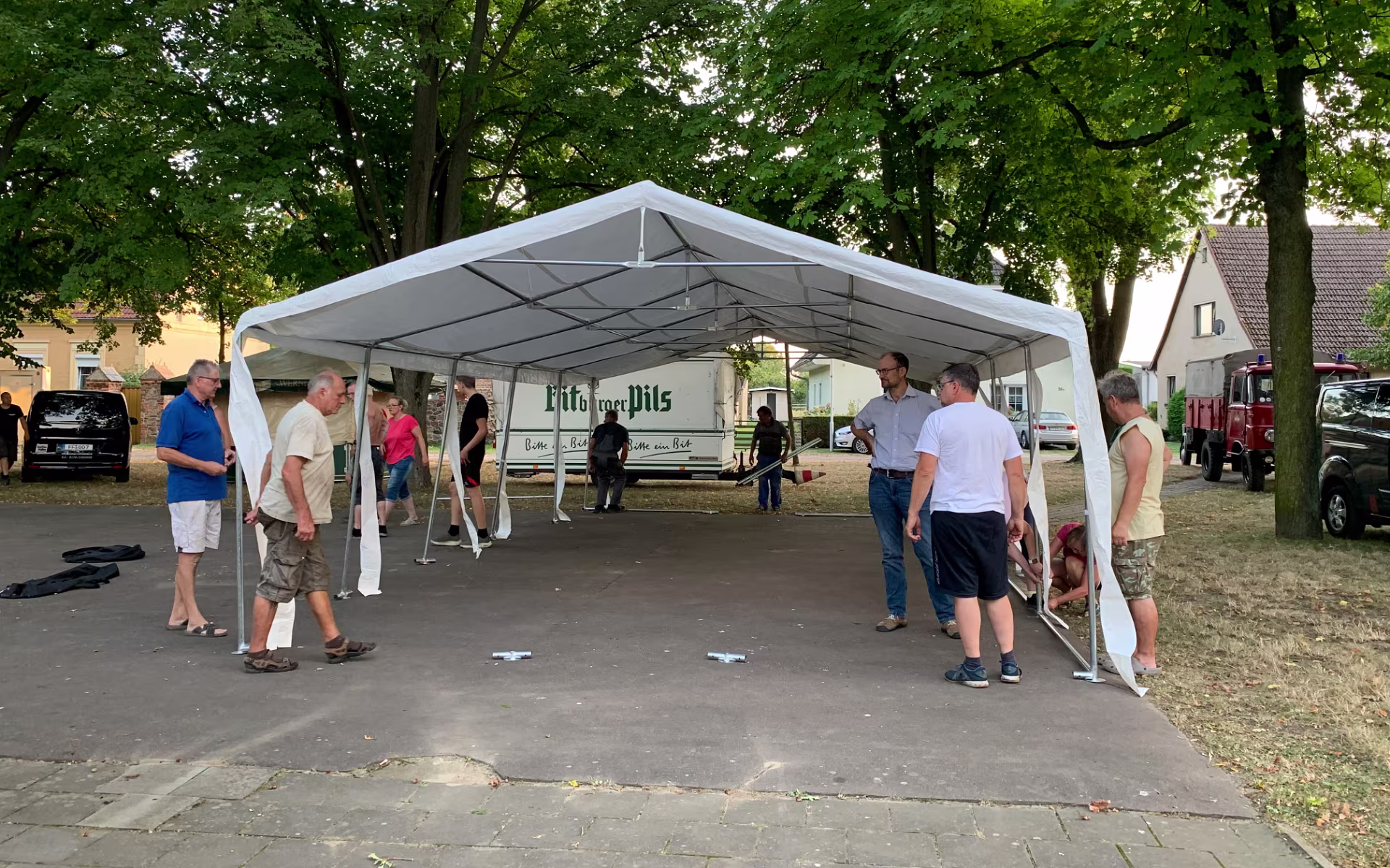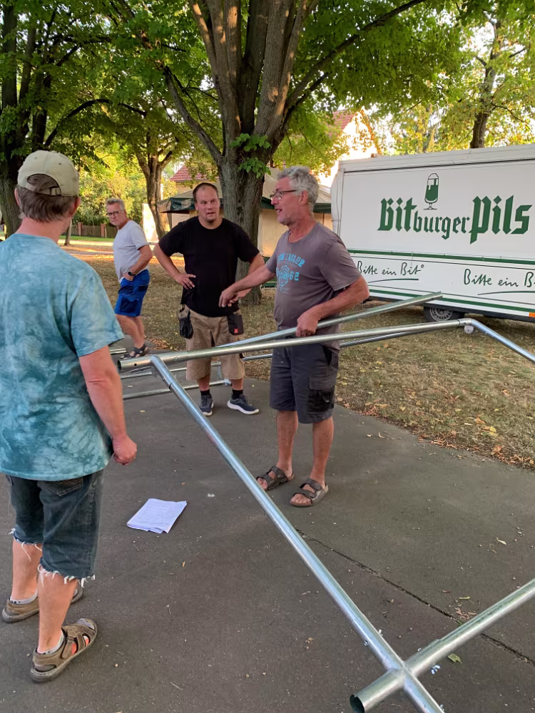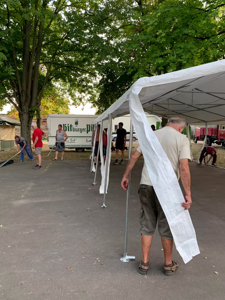 Im Vorfeld haben wir mal wieder ein bisschen die Werbetrommel gerührt Vorbereitung der Süßigkeiten für die Kletterstange. Die Dorfplatte wird gefegt und die Absperrung aufgebaut. Wie in jedem Jahr war der Aufbau des Zeltes ein Highlight und eine kleine Herausforderung. Als Finale der Vorbereitung wurde alles noch schön geschmückt. 01.06.2024 Kindertag07.09.2024 20. Oltimer-Treffen
