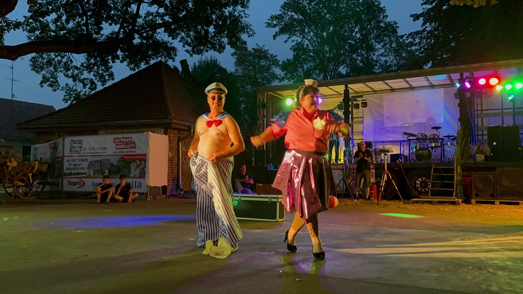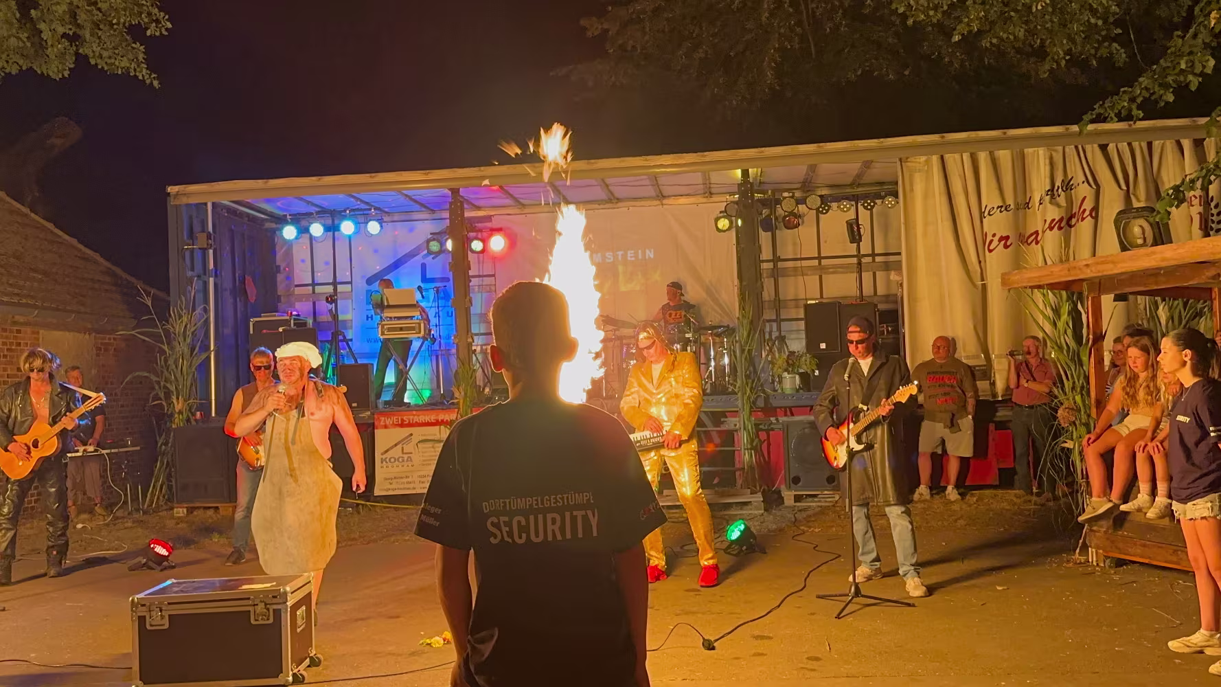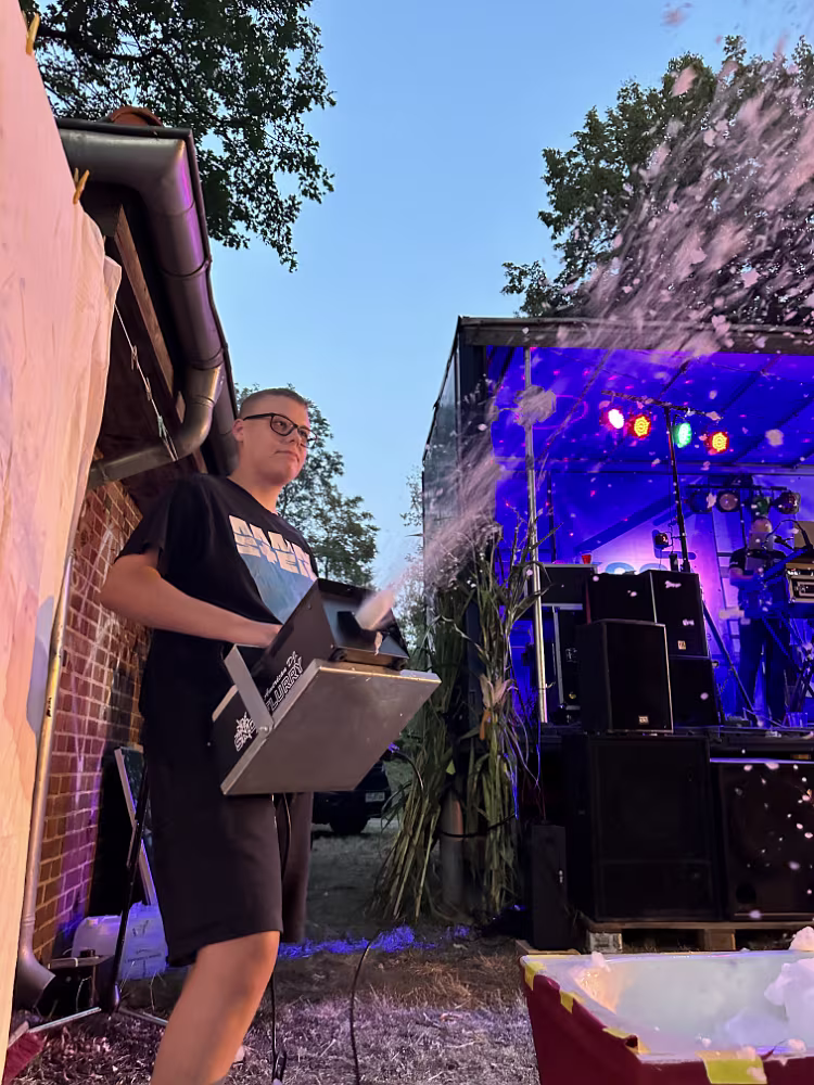 Party mit dem Dorftümpelgestümpel! Die Vorbereitung des ersten Acts hat den Kids einen Schaumregen beschert... Du die Wanne ist voll Dieter Hallervorden und Helga Feddersen Die beiden Kids haben es wirklich drauf! Nele und Niklas sind frisch gebackene Landes-Viezemeister Cheri Cheri Lady Modern Talking Fang das Licht Karel Gott und Darinka Die Biene Maja Karel Gott Rammstein Rammstein kleines Drummer Intermezzo Ich Will Rammstein Nach den Acts ging es noch bis tief in die Nacht weiter... 07.09.2024 20. Oltimer-Treffen08.09.2024 Frühschoppen, Schlagergottesdienst und Line Dancer