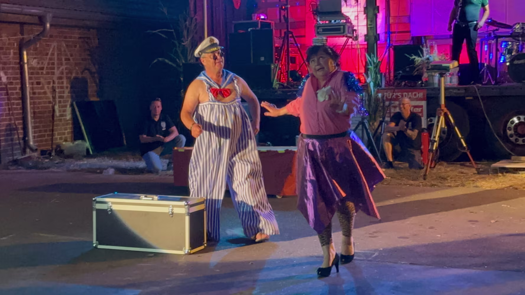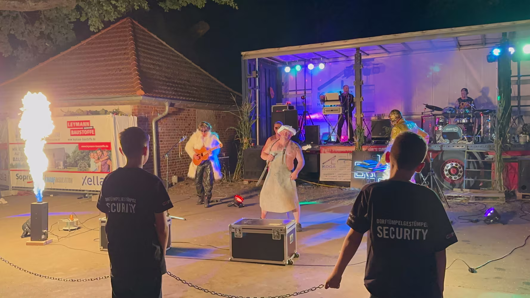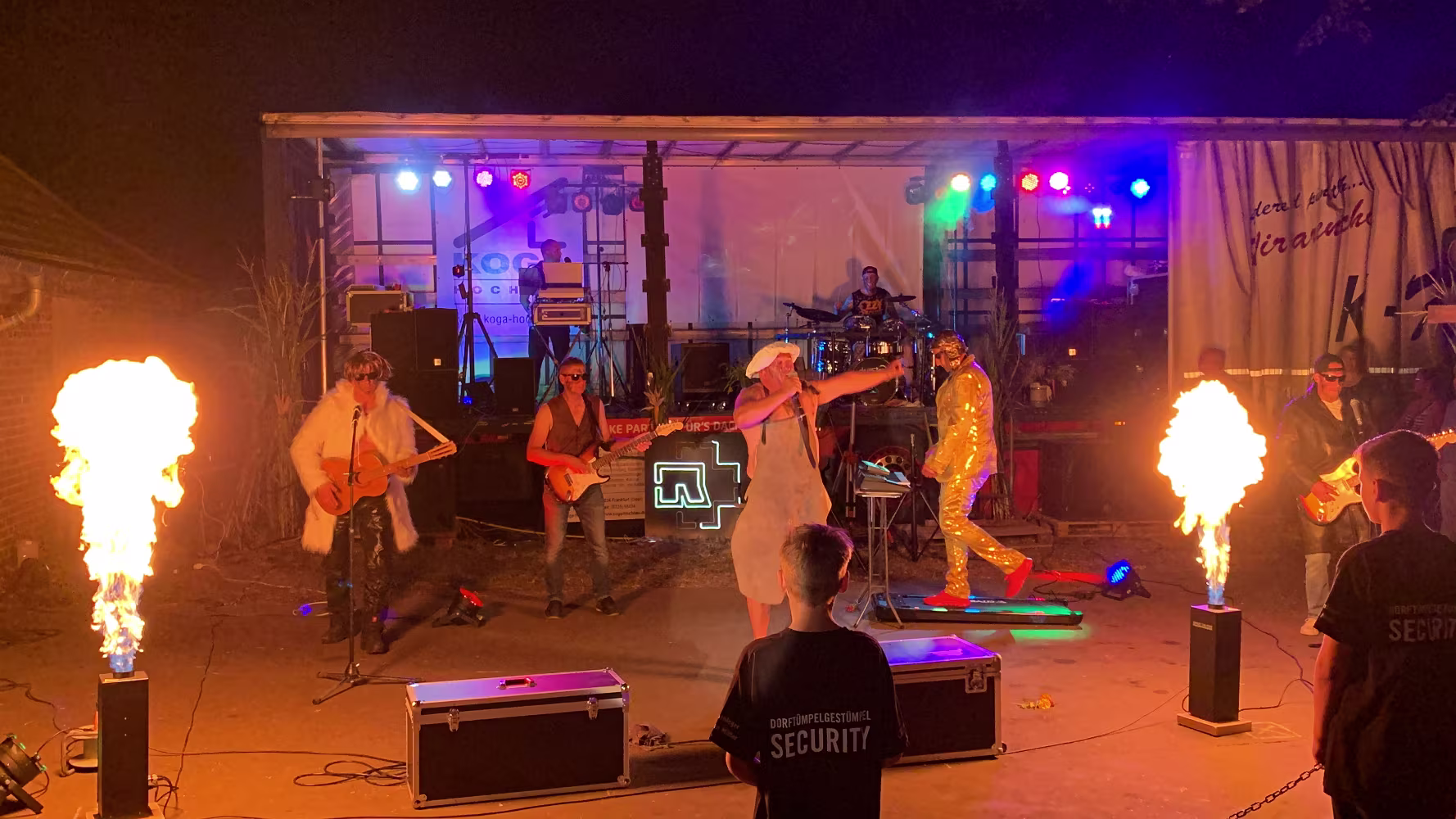 Party mit dem Dorftümpelgestümpel! Die Vorbereitung des ersten Acts hat den Kids einen Schaumregen beschert... Du die Wanne ist voll Dieter Hallervorden und Helga Feddersen Die beiden Kids haben es wirklich drauf! Nele und Niklas sind frisch gebackene Landes-Viezemeister Cheri Cheri Lady Modern Talking Fang das Licht Karel Gott und Darinka Die Biene Maja Karel Gott Rammstein Rammstein kleines Drummer Intermezzo Ich Will Rammstein Nach den Acts ging es noch bis tief in die Nacht weiter... 07.09.2024 20. Oltimer-Treffen08.09.2024 Frühschoppen, Schlagergottesdienst und Line Dancer